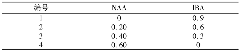 表3 生根培養(yǎng)基不同激素濃度配比表 mg·L-1