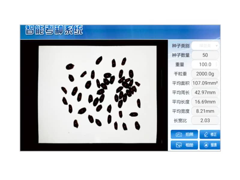 功能特點:1.安卓系統(tǒng)具有操作簡潔化,應用人性化、智能化和可升級化等優(yōu)點。2.可以直接通過拍照實現(xiàn)種子數(shù)量計算,手動輸入重量計算出千粒重以及平均面積、平均周長、平均長度、平均寬度、長寬比。3.可以直接查看數(shù)據報表,也可將所有數(shù)據導出excel到電腦,方便用戶進行本地數(shù)據存儲和數(shù)據對比分析工作,滿足了數(shù)據存儲的需要。4.具有手動修正功能,確保數(shù)粒、重量精度更高。5.背光裝置采...